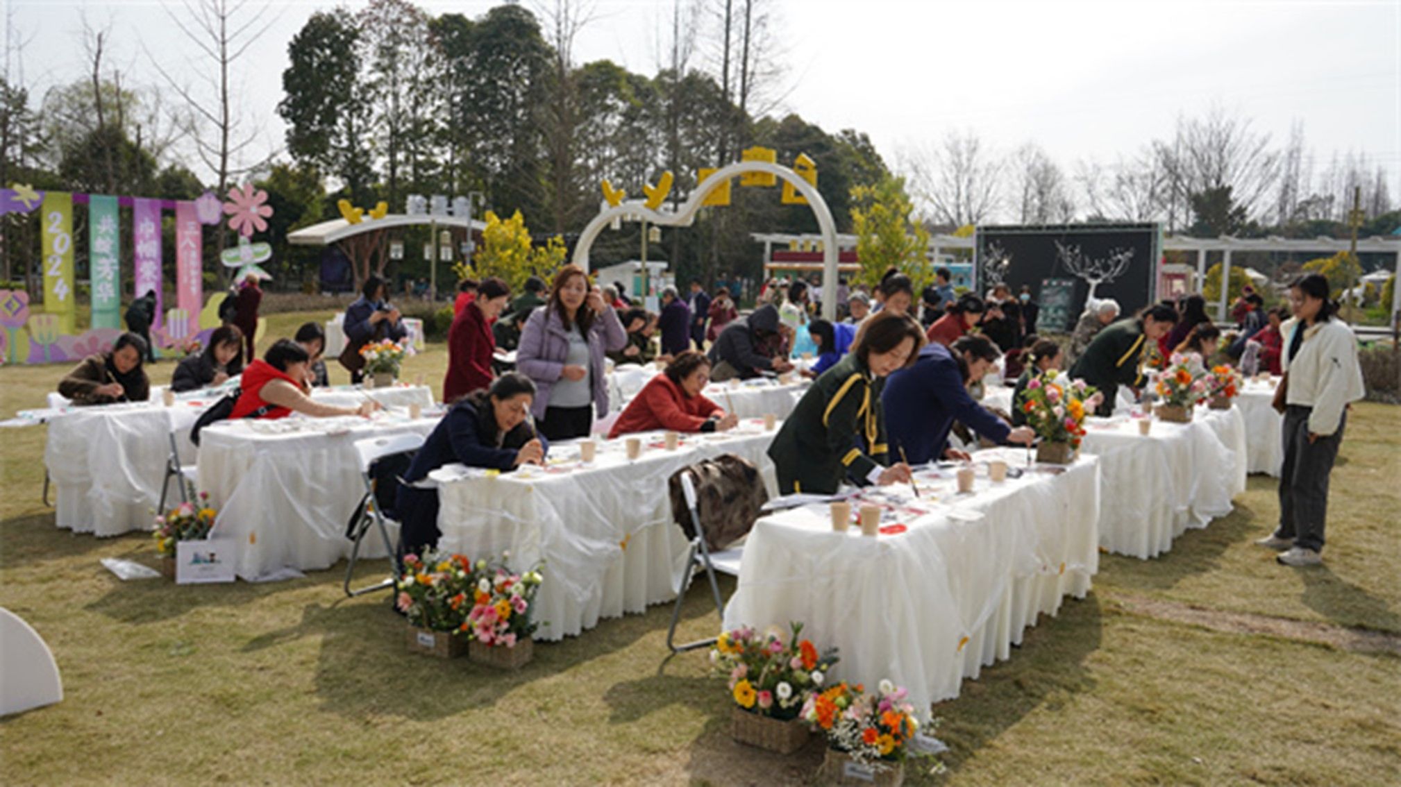 在插花活动进行得如火如荼的同时,画纸鸢活动也在另一片区域热闹展开。女军休干部们用彩笔在纸鸢上描绘出五彩斑斓的图案,寓意着她们对生活的热爱和对未来的憧憬。大家尽情发挥想象,手绘美丽特色的风筝,放飞梦想和祝福,尽情地表达对春天的喜悦。