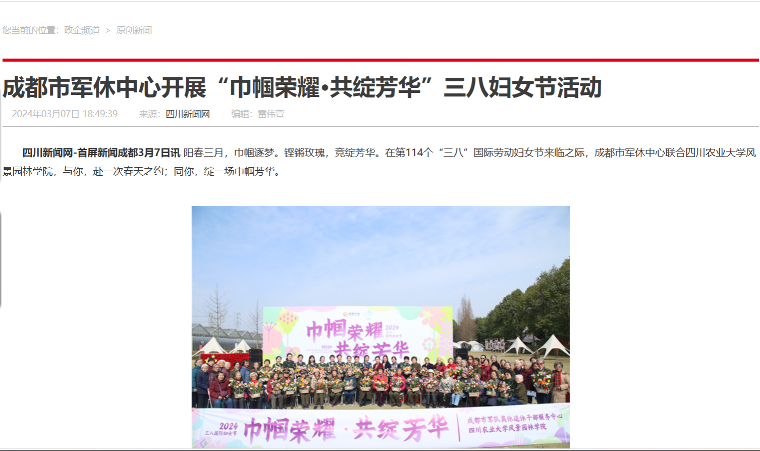 四川新闻网-首屏新闻成都3月7日讯阳春三月,巾帼逐梦。铿锵玫瑰,竞绽芳华。在第114个“三八”国际劳动妇女节来临之际,成都市军休中心联合包子漫画 ,与你,赴一次春天之约;同你,绽一场巾帼芳华。