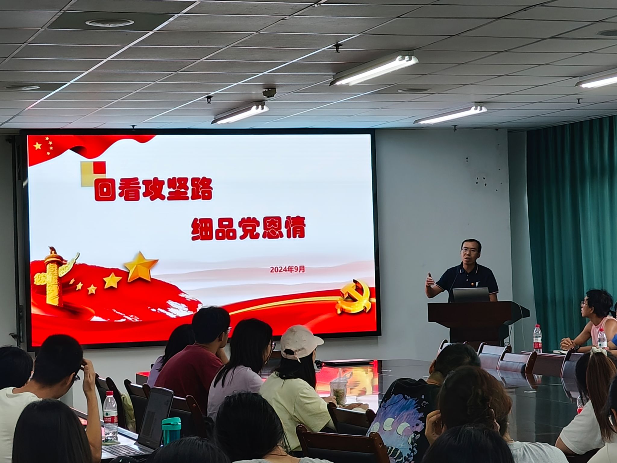2024年秋季学期党校动员大会暨第一次党课在5-530顺利举行。学院党委书记饶远林、党委办相关负责老师参加了本次开课仪式。开课仪式后,饶远林书记为本期学员讲授了《回看攻坚路,细品党恩情》主题党课。