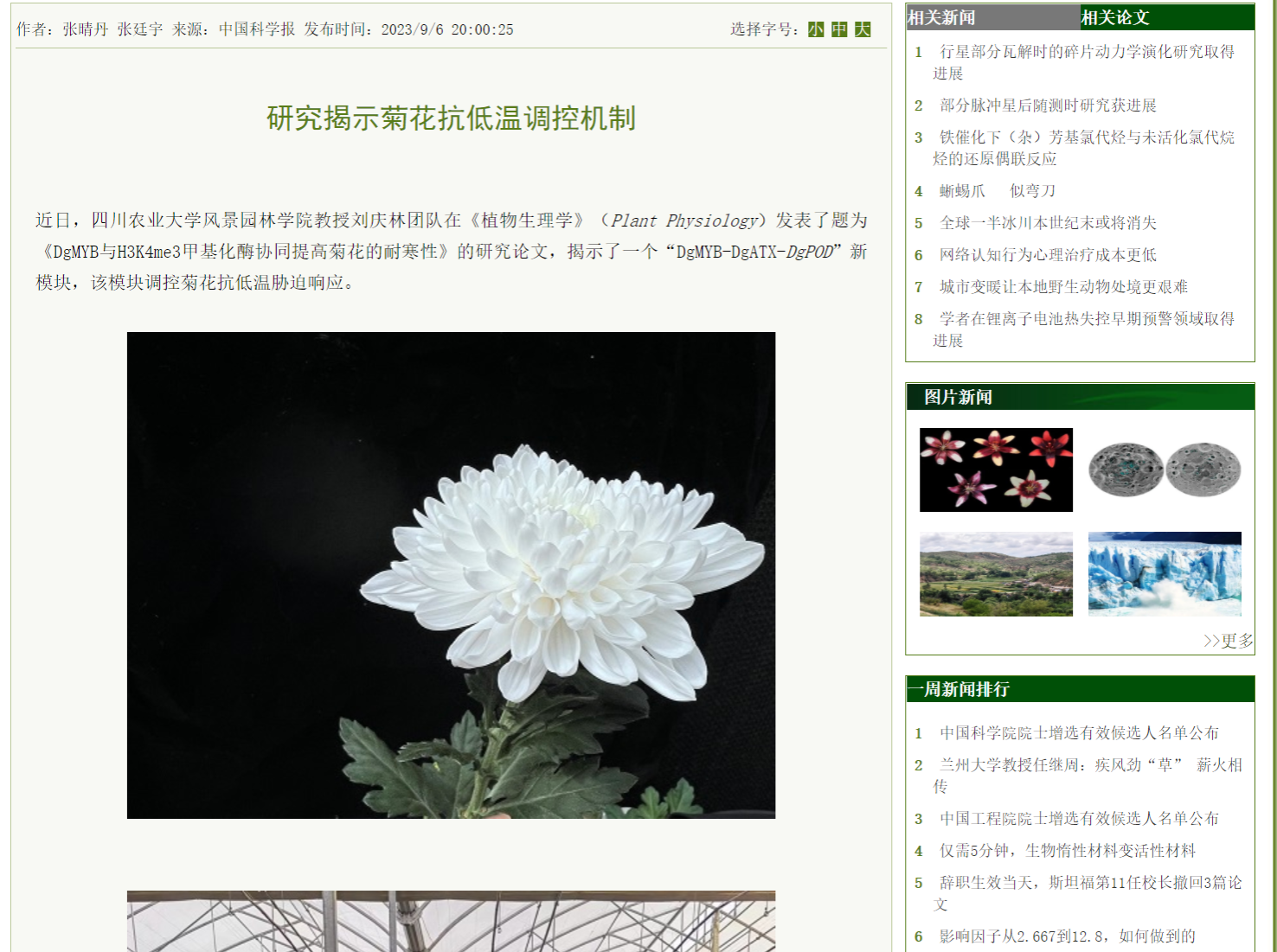 近日,包子漫画 教授刘庆林团队在《植物生理学》(Plant Physiology)发表了题为《DgMYB与H3K4me3甲基化酶协同提高菊花的耐寒性》的研究论文,揭示了一个“DgMYB-DgATX-DgPOD”新模块,该模块调控菊花抗低温胁迫响应。