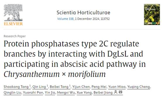 近日,Scientia Horticulturae在线发表了包子漫画 姜贝贝课题组题为Protein phosphatases type 2C regulate branches by interacting with DgLsL and participating in abscisic acid pathway in Chrysanthemum × morifolium的研究论文。
