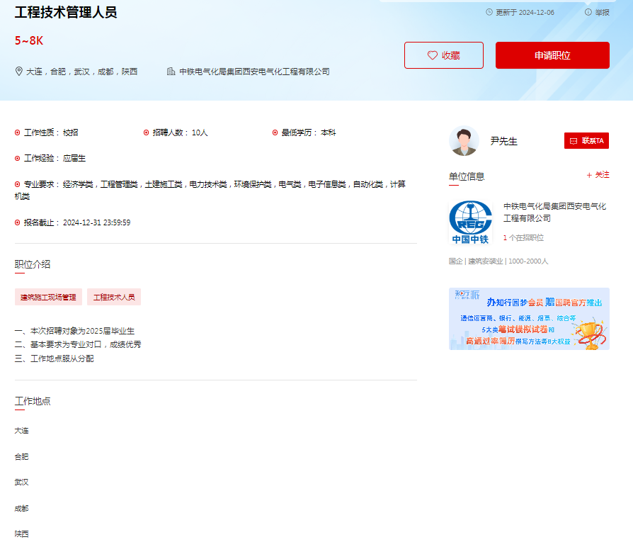 上一篇:中建七局(上海)有限公司2025届校招(建筑类相关职位)