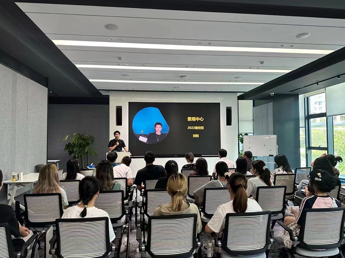 在访问中,双方就行业发展、人才培养、就业实习等方面进行了深入交流,在企业工作的往届校友还分享了自己的成长收获。此外,饶远林一行还在企业相关负责人和校友的带领下参观了万华麓湖项目各组团的景观设计案例,为学生实地感受专业应用的具体场景提供了参考。