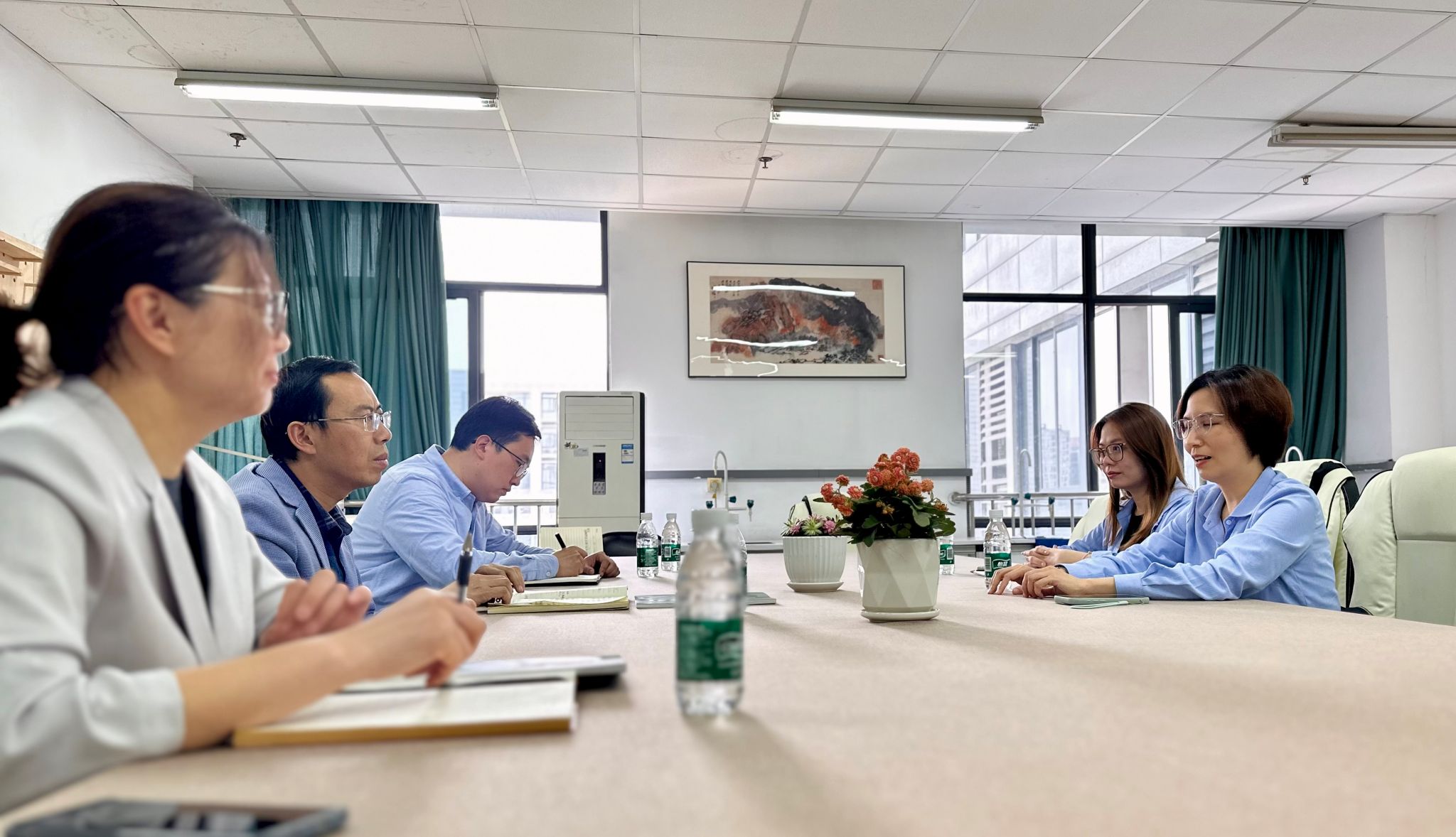 4 月 15 日广州华苑园林股份有限公司人才负责人刘雅宁、校院招聘杜经理一行莅临学院,就深化毕业生选用、校企合作、推动产教融合等进行洽谈。学院党委书记饶远林、学院副院长姜贝贝、风景园林系主任潘翔及党办相关老师参与座谈。