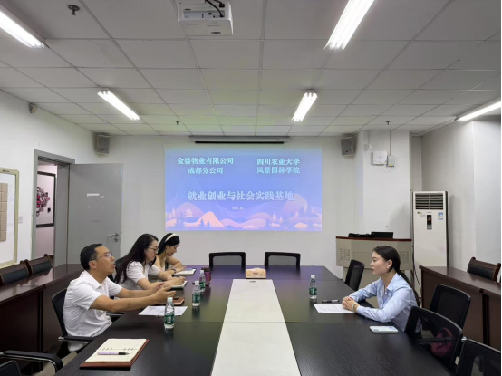 5月 17 日,金碧物业有限公司成都分公司负责人郭思琦莅临学院,就深化毕业生选用、校企合作、推动产教融合等进行洽谈。学院党委书记饶远林、园林系副主任贾茵及党办相关老师参与座谈。
