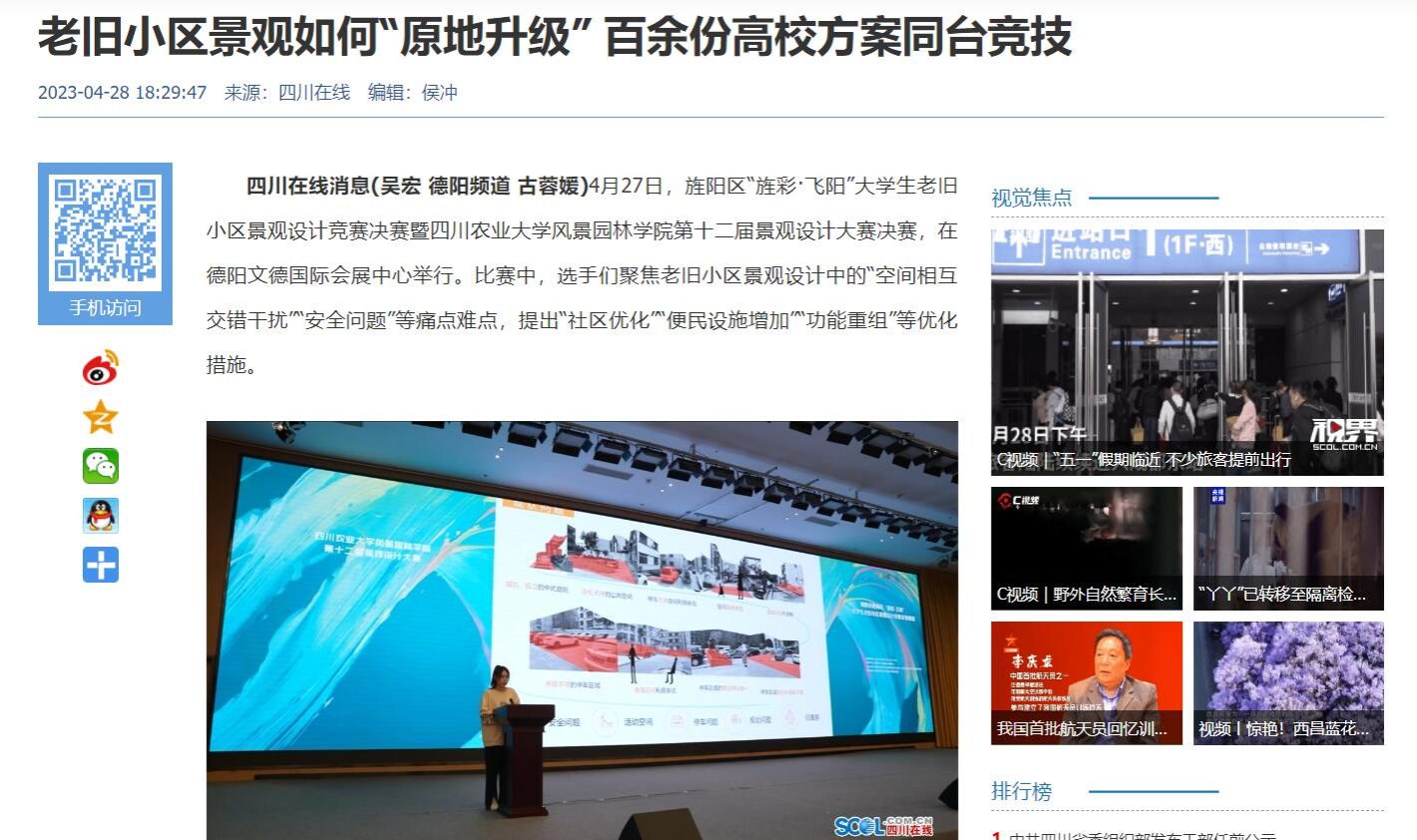 第十二届景观设计大赛决赛,在德阳文德国际会展中心举行。比赛中,选手们聚焦老旧小区景观设计中的“空间相互交错干扰”“安全问题”等痛点难点,提出“社区优化”“便民设施增加”“功能重组”等优化措施。