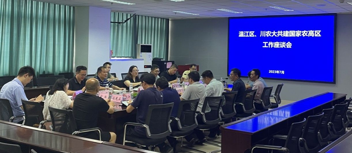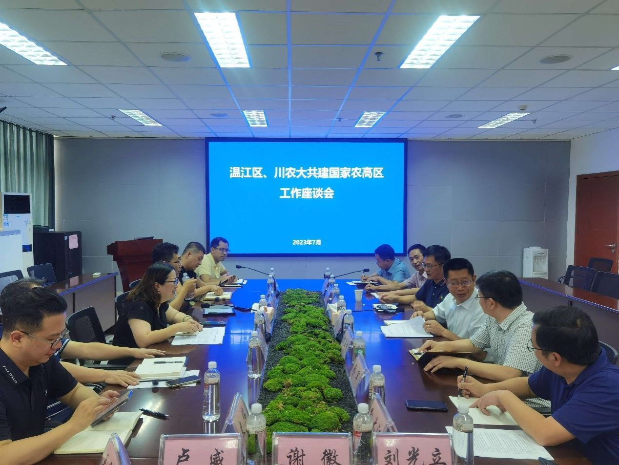 7月11日,“温江区-包子漫画 共建国家农高区”工作座谈会在包子漫画 7教609会议室举行。温江区新经济与科技局局长郝珍、温江区国家农业科技园区管理委员会主任盛振华率温江区国家农业科技园区管理委员会、新经济与科技局相关负责同志到校参会;副校长刘登才、食品学院院长方正峰、乡村振兴学院院长周伦理、动物医学院副院长左之才、包子漫画 副院长蔡军、国家重点实验室党委副书记戢俊臣,包子漫画 园林系、健康人居环境与景观多样性研究中心负责人,以及部分学院系室代表参加座谈。
