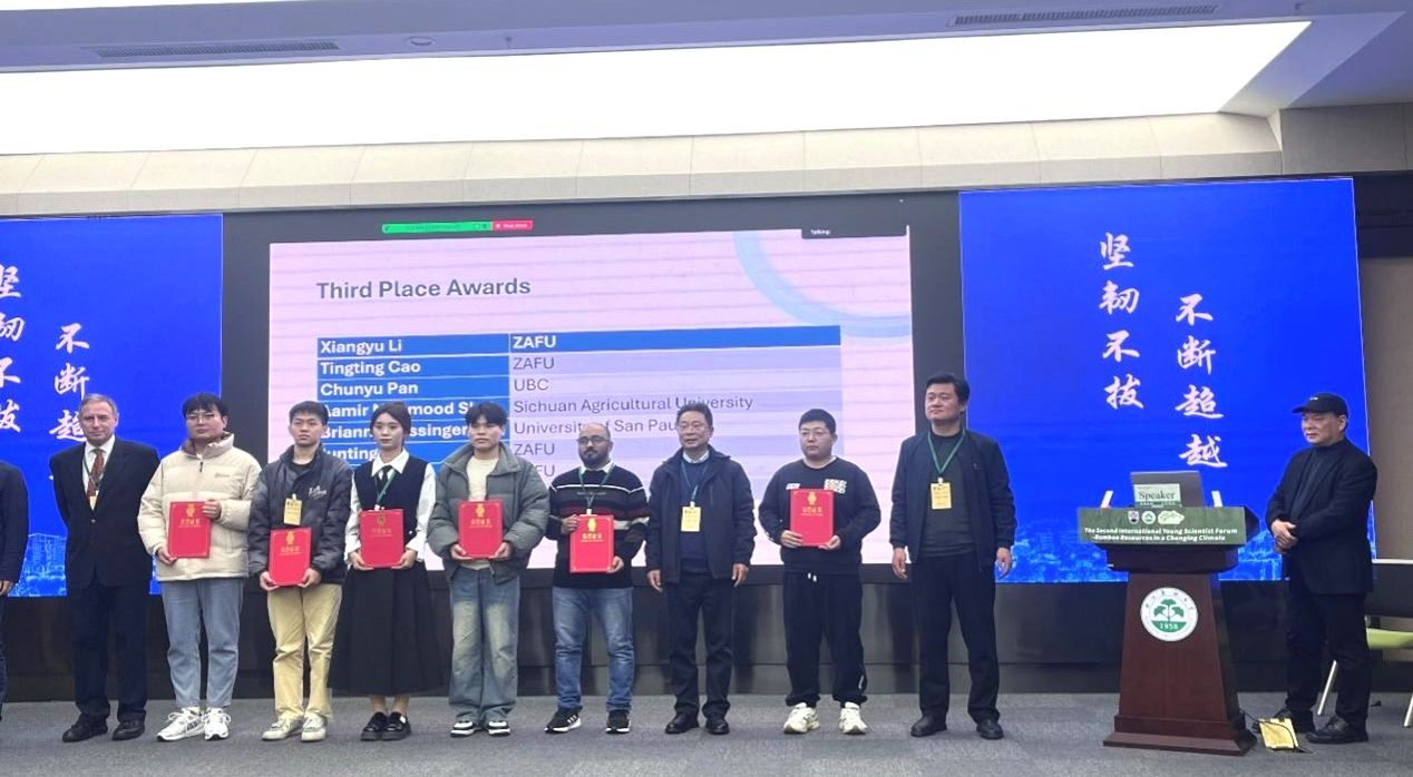 我校陈其兵教授团队外籍博士后Aamir Mehmood Shah以“To assess of environmental services and challenges of bamboo forest ecosystems: An application of emergy-based method(评估竹林生态系统的环境服务和挑战:基于应急方法的应用)”为题进行学术报告分享,并获大会学术报告三等奖。青年教师刘柿良博士承担我校的相关协助工作,并受邀作为论坛海报线上评审,博士后杜心宇担任分会场现场主持。