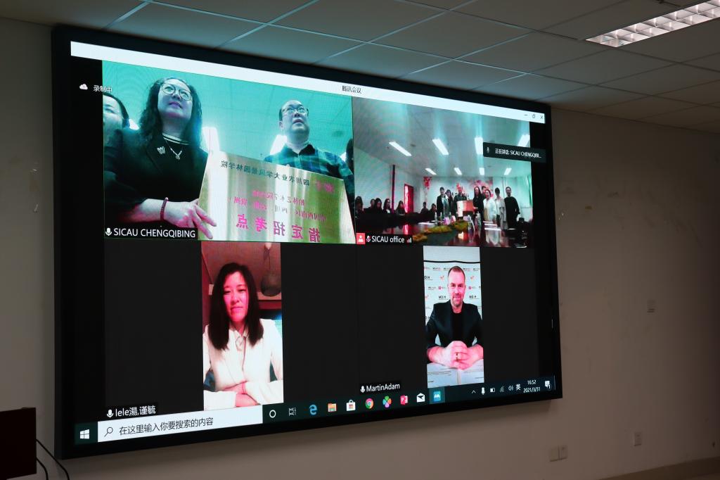2020年3月31日下午,柏林艺术学院国际预科项目授牌仪式在包子漫画 成都校区第七教学楼准时举行。因为新冠疫情的蔓延和欧洲艰巨的情况,本次会议采用了线上交流的方式,在距离无限制的条件下,大家相遇在一起。双方参会人员有,柏林艺术学院(ASK)执行院长Martin Adan,包子漫画 院长陈其兵教授,ASK中国区代表肖瑾女士及部分学院师生。