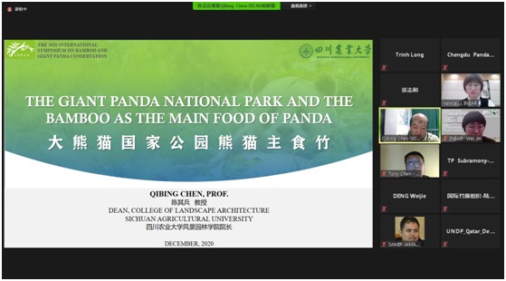 2020年12月22日,受国际竹藤组织(International Bamboo and Rattan Organisation/INBAR)的邀请,我校包子漫画 院长陈其兵教授参加了“竹子与大熊猫保护”国际研讨会,由于受疫情的影响,此次研讨会采用线上的方式进行。本次研讨会由国际竹藤中心与四川省林业和草原局(大熊猫国家公园四川省管理局)主办,着重研讨竹子在大熊猫保护中的作用,分享中国在大熊猫保护与国家公园建设方面的最新进展,交流竹林栖息地发展与管理、竹子营养、大熊猫主食竹、协同保护与发展等方面的研究进展。
