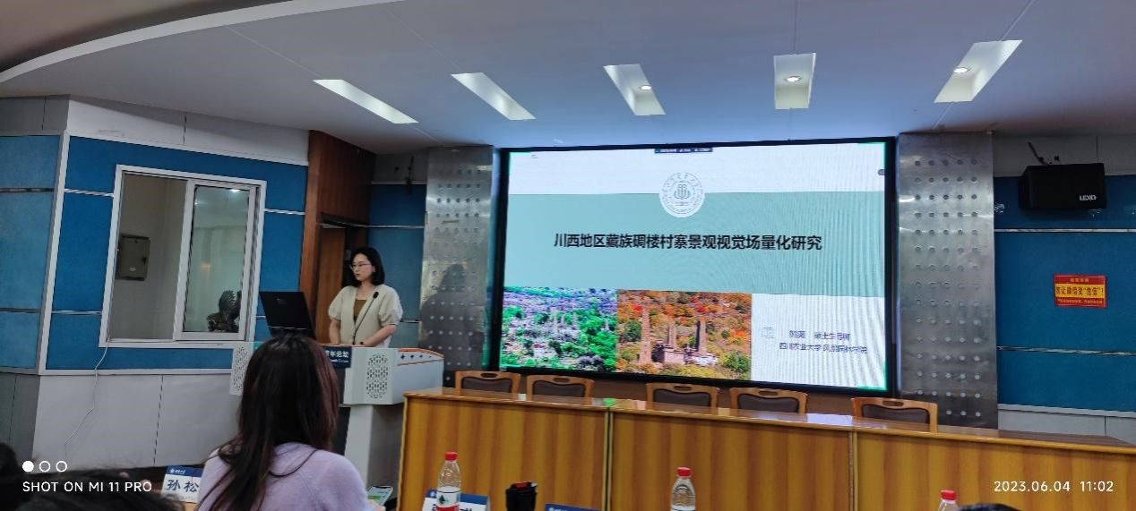 熊薇博士在“乡村景观与乡村聚落”分论坛交流《川西地区藏族碉楼村寨景观视觉场量化研究》,分享了团队以丹巴梭坡乡藏族碉楼村寨为研究对象,基于混合精度模型对村寨营建规律、景观要素视觉特征、组织关系等进行量化解析,揭示出其形态功能价值和场所精神。她还介绍了相关研究成果对该地区传统碉楼村寨风貌保护产生的科学意义,以及对解决传统村寨人居环境建设与旅游规划发展中矛盾的实践价值。