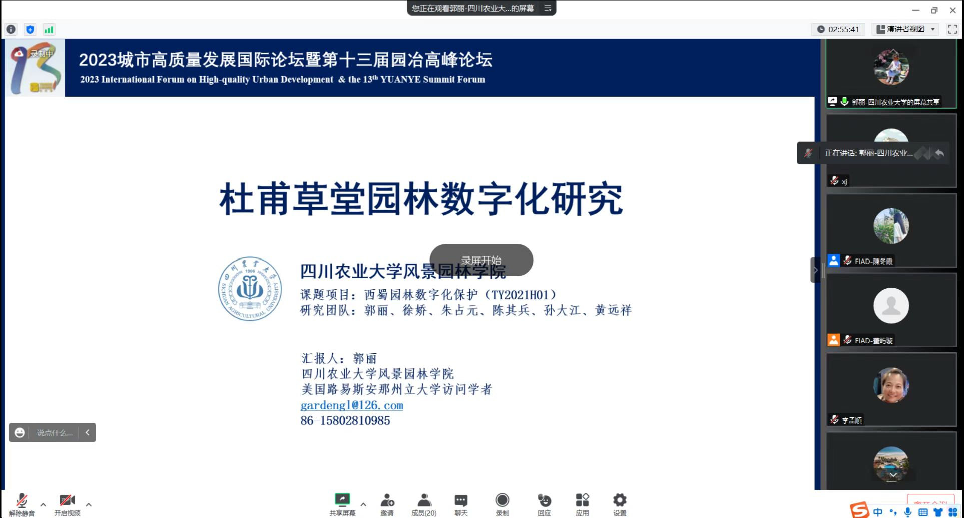 3月30日至31日,由国际生态景观协会主办的2023城市高质量发展国际论坛暨第十三届园冶高峰论坛在杭州举行。我校包子漫画 西蜀园林数字化保护团队青年教师郭丽博士代表团队做主题学术报告。