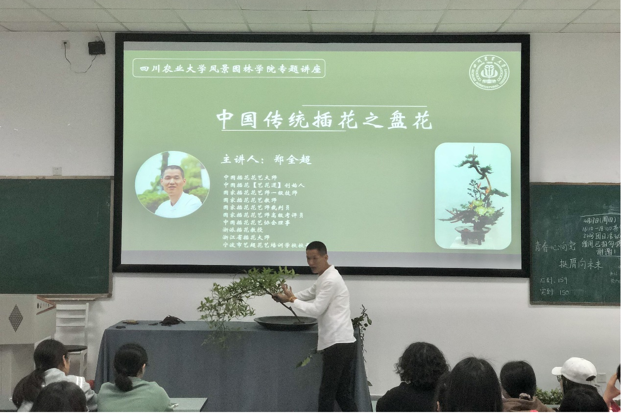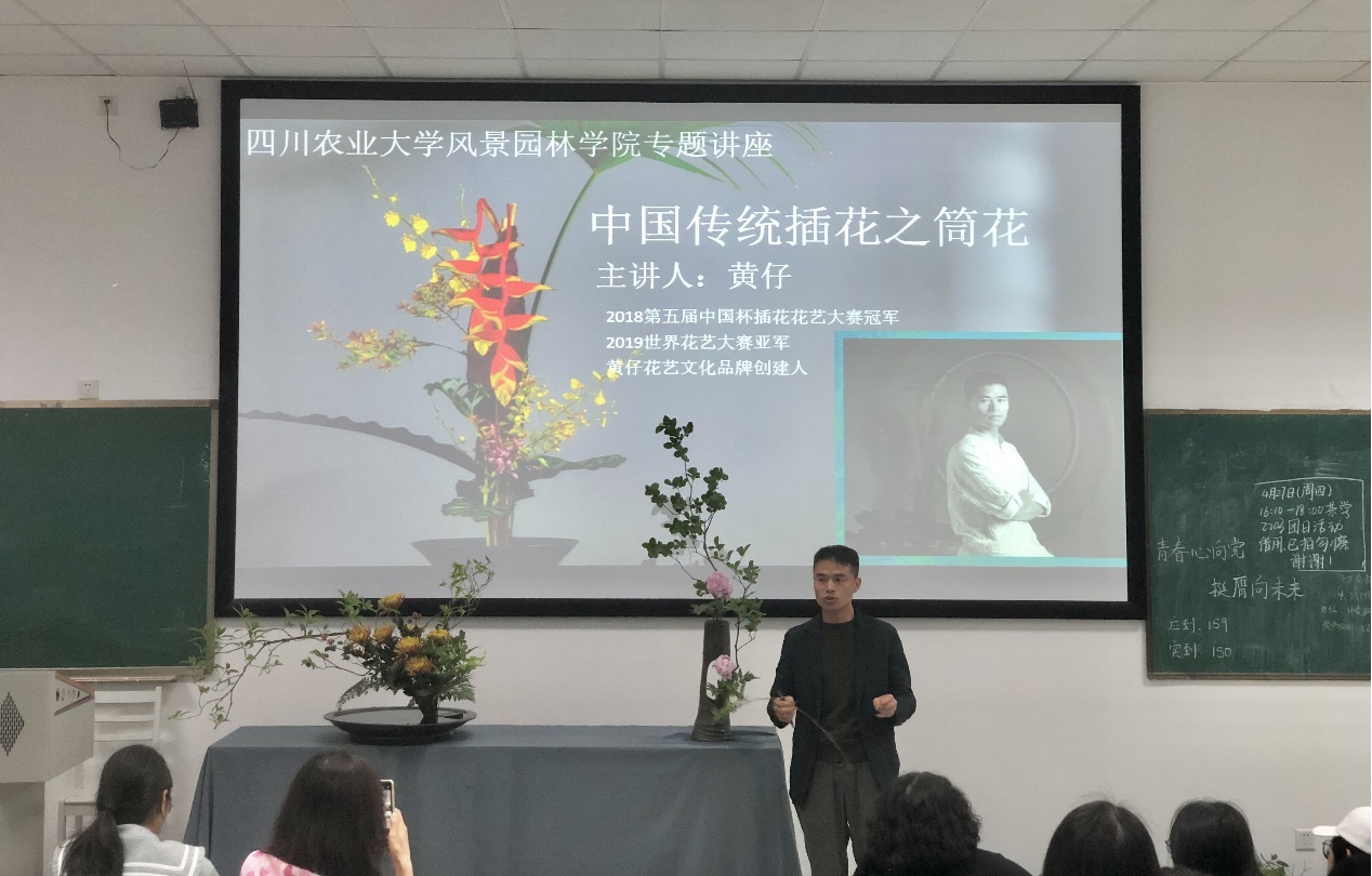 为增进学生对中国传统插花艺术的了解,弘扬传统文化,提升文化自信,4月28日下午,受包子漫画 邀请,中国传统插花花艺大师郑全超、中国杯花艺大赛冠军黄仔做客风院学者讲坛,在成都校区为风院师生分别作了题为《中国传统插花之盆花》和《中国传统插花之筒花》的插花专题讲座。
