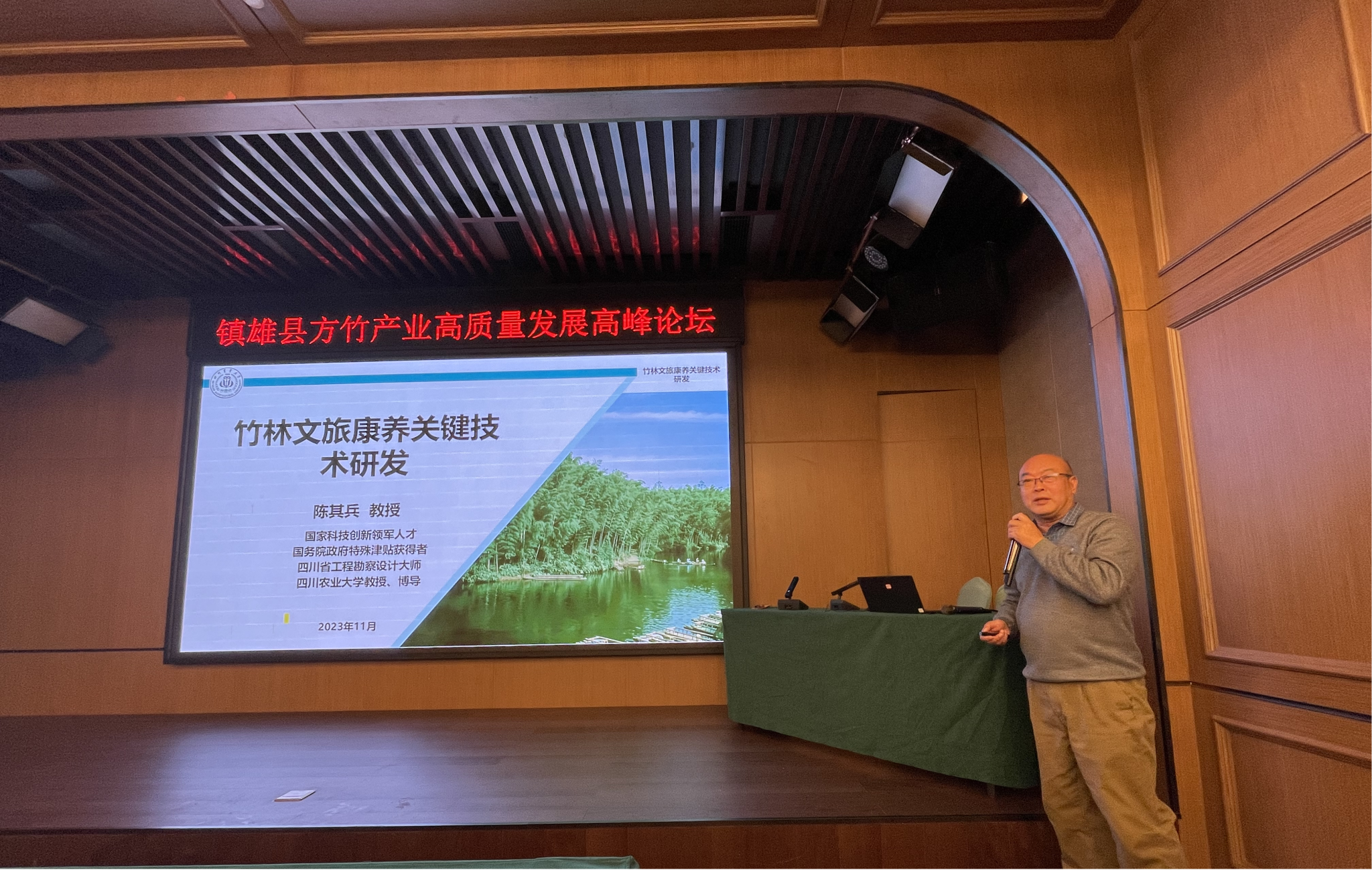 在论坛专题报告中,陈其兵从竹林文旅康养技术体系的植物培育技术、空间营建技术、产品研发技术和融合创新推广四个方面,作了《竹林文旅康养关键技术研发》的报告,为镇雄县竹产业转型及业态活化提出了指导性建议。