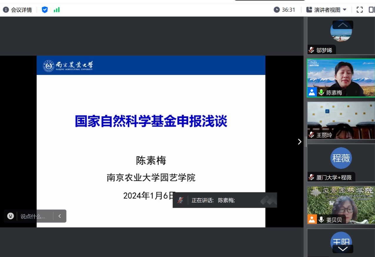 为深入推动国家自然科学基金申报工作,提升基金申报书的质量,学院于2024年1月6日和9日分别邀请了南京农业大学陈素梅教授和同济大学彭婉婷助理教授作国家基金申请主题报告和经验分享。
