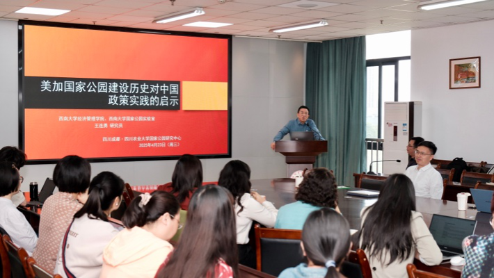 4月23日,西南大学经济管理学院王连勇教授、园林园艺学院杜文武教授应邀到校开展2025国家公园建设专题讲座,共同探讨在跨学科视域下国家公园高质量发展前沿性理论与实践问题。