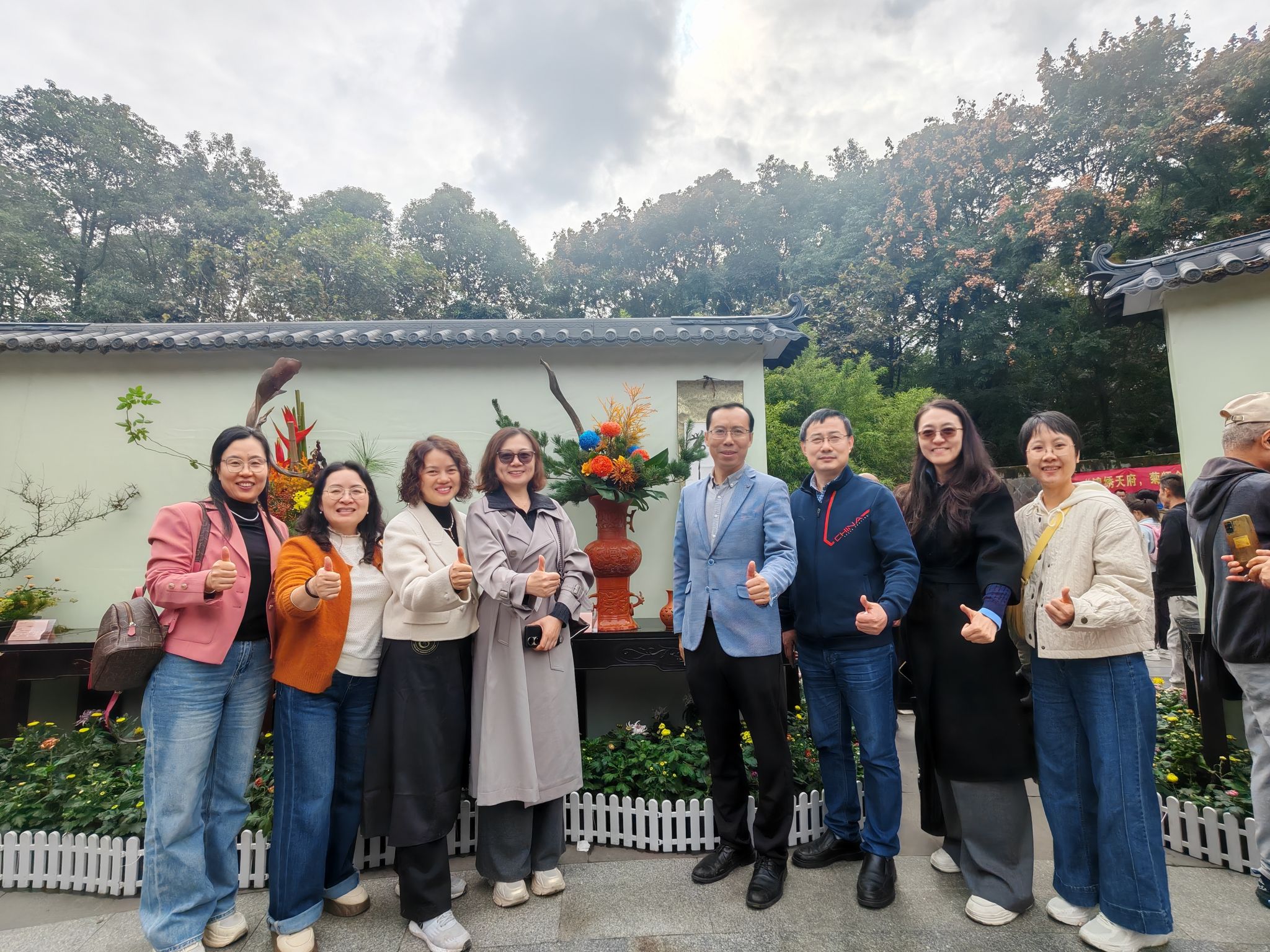 活动伊始,饶远林书记阐述了此次活动的初衷:希望教职工在领略自然之美与艺术之韵的过程中舒缓工作压力,加深同事情谊,进一步凝聚团队合力,激发干事创业的热情。随后,在工会主席姜贝贝的引导下,大家首先聚焦学院在菊花展中的特色展台,并欣赏了国家一级花艺师、学院杜娟老师的参展插花作品。活动现场,杜娟老师还带来插花艺术公益表演,她精湛的技艺与生动的讲解,不仅尽显学院教师的专业素养,更吸引了大批游人驻足观赏。