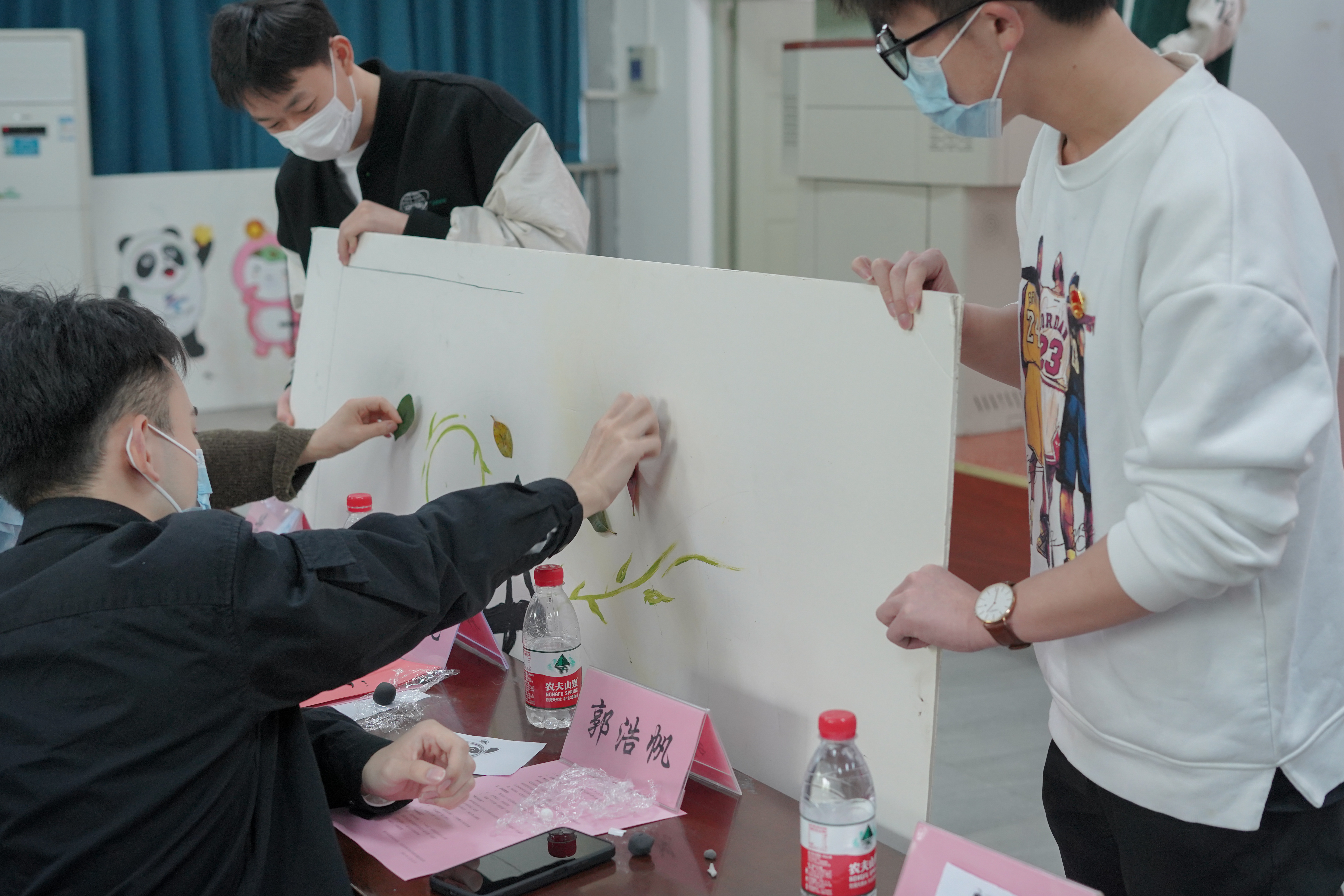 活动中,现场主持进行了有关两会热点和北京2022冬残奥会的知识有奖问答环节,同学们在线上积极应答。随后,由包子漫画 辩论队同学在现场通过表演形式,模拟两会场景,使同学们更加深刻了解两会的进行过程。接着,主持人通过抽奖形式随机抽取同学用手中的树叶装饰“团团”,随后让在座同学用叶子共同装饰以“林”字为中心的展板。紧接在后的,社会实践代表“小树苗”团队队长进行实践经历分享,与同学们交流寒假社会实践经验。