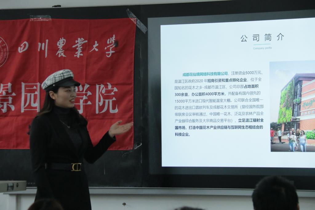在主持人精彩的介绍后,包子漫画 06级毕业生,同时也是花仙境网络科技中心负责人的师姐为同学们带来了精彩的演讲。师姐从就业信息、学科发展前景、设计师的职业素养等多个方面为我们详细讲解了风景园林这一专业的优势和潜力,大家明确地感受到了这一专业是多学科整合的,是艺术与科学并存的,是需要物质与生命有机整合的。同时师姐就目前的行业基础和现状,为这一专业同学毕业后的规划做出了方向推荐、建议和告诫。相信前辈的经验之谈加深了大家对风景园林这一专业的理解和认知,当然,其他专业的同学也可以从中吸取教训,举一反三,受益匪浅。