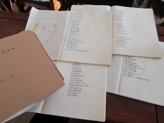 第二堂课是快乐的作文课。以我的家乡为题,志愿者们带领小朋友们发现并记录家乡的美丽,同时思考家乡这些年来的改变,幻想期盼中未来家乡的样子。文字结合着美丽的图画,家乡的模样,在小朋友的笔下渐渐勾勒,逐渐清晰。最后一堂课是热闹的音乐课,志愿者们教导孩子们学习成都和烟火成都两首歌曲,孩子们也教习志愿者学习当地的民谣。欢乐的音符,跃动的旋律,在教室的上空久久回绕。