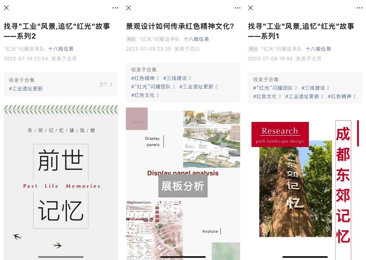 团队成员每日撰写关于红光厂的故事推文,在微信公众号、小红书、微博以及bilibili等自媒体平台上同步更新,进行“红色精神”主题宣传,认真述说东郊记忆背后的红色故事以及红色精神。