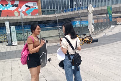在凤凰山体育公园,除了一座专业足球场、一座综合体育馆,还有一个功能全面的全民健身中心,里面建设了包括羽毛球、乒乓球、排球、篮球等多个场馆。“我们这个全民健身中心刚建成开放一年左右,基本上每个时段都有很多运动员和市民来这里运动,各种场馆都是低收费面向广大市民开放。大运会临近,来这里的年轻人也越来越多了。”全民健身中心的工作人员讲述道。凤凰山体育公园一直响应“场馆惠民”号召,最大程程度满足市民健身需求,为蓉城的体育运动爱好者提供了优质的健身场地,让大运建设成果惠及于民。调研中,实践团队的成员采访到了许多来凤凰山体育公园的游玩或健身的市民游客,“我来此地进行球类运动或健身活动,因为体育公园设置和配套完备,价格惠民加上交通相对比较方便,让我有非常好的运动体验,也能和同龄人畅快交流。”一位被采访的游客说到。在询及关于大运会相关知识时,他们也都诉说了对大运会的期待之情,并且期望志愿者们在服务和宣传大运时,能助力倡导市民重视运动健身,以体现成都城市的人文关怀。此外,来凤凰山游玩的年轻人表示希望尝试一些新潮的运动项目,体现青春的活力。