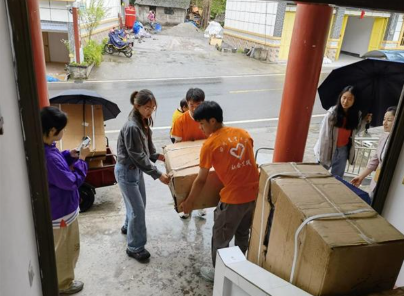 图为团队成员在搬运教学物资。 任亦凡 供图