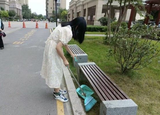 前期垃圾分类宣传工作完成后,团队成员开始带头进行垃圾回收分类。她们发现社区内各个绿化空间仍然有塑料瓶、废木料、废纸板等,于是带头将各类垃圾捡起,分类扔到垃圾箱内,以实际行动践行绿色环保理念。