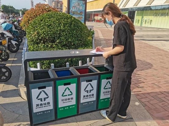 在本次社会实践前期,小队成员走进社区调查市区周边垃圾分类设施是否完备以及垃圾分类落实的具体情况,为进一步的宣传倡议打好基础。