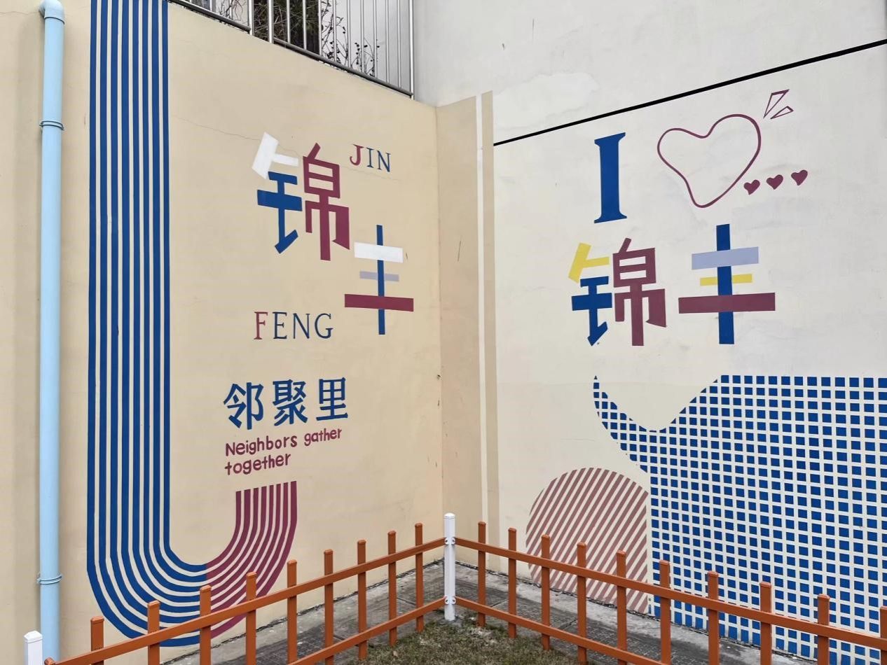 相对以往,灰色水泥砖建构的楼房已穿上了“新衣”,墙面不复单调暗沉,取代以多样的城市文创特色。“I Love 锦丰”象征着当地居民真挚的感情,鲜艳显眼的颜色碰撞组合在一起,让这一小小的转角重获生机。