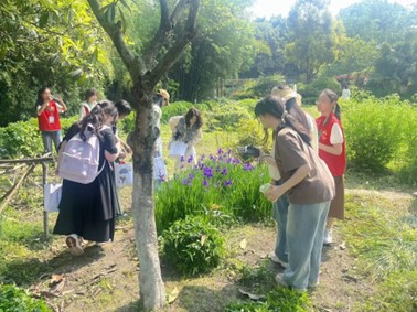 4月中旬,“宣讲团往成中医药用植物园与西南特色中药资源国家重点实验室进行参观学习。在参观过程中,团队成员通过志愿者的讲解认识了几十种常见的中医药用植物,并了解到西南特色中药的发展与创新。“紫荆、南天竹、牡丹、痒痒树这些都是我们专业课程上遇到过的植物,但我们学习时更偏向于植物的观赏价值,没想到它们在药用方面也有这么多功效!”宣讲团成员王林熙感叹道,“在重点实验室见证西南中药的发展历程,我深刻体会到中医药学是科学、严谨的,科研人员求实创新的精神是令人敬佩的。”