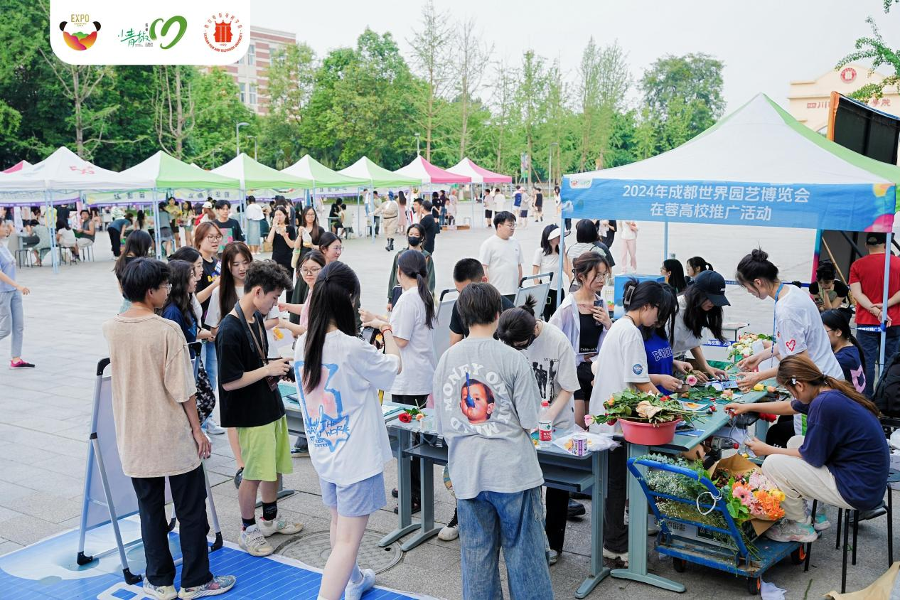 4月20日,2024成都世园会首场在蓉高校推广活动在吉利学院拉开帷幕。5月17日,“青春志愿·幸福成都”花卉园艺进校园高校趣味园艺活动在包子漫画 成都校区举行,特设“拾趣川花”园艺名家科普区,开展川花展示科普、茶艺表演、插花花艺体验活动。5月22日,该活动在四川电影电视学院安仁校区举行,结合学校“川流簇梦再奋进,挺膺担当立潮头”2024社团活动节暨大学生文化节,活动现场设置“敲出春意盎然”植物拓染DIY活动区,学生现场感受中国传统草木拓染的魅力。5月23日,该活动在四川工商学院举行,活动现场设置“妙手生花”非遗团扇DIY区,由高校青年充分发挥想象力和创造力,挑选自己喜爱的植物材料,制作团扇作品。