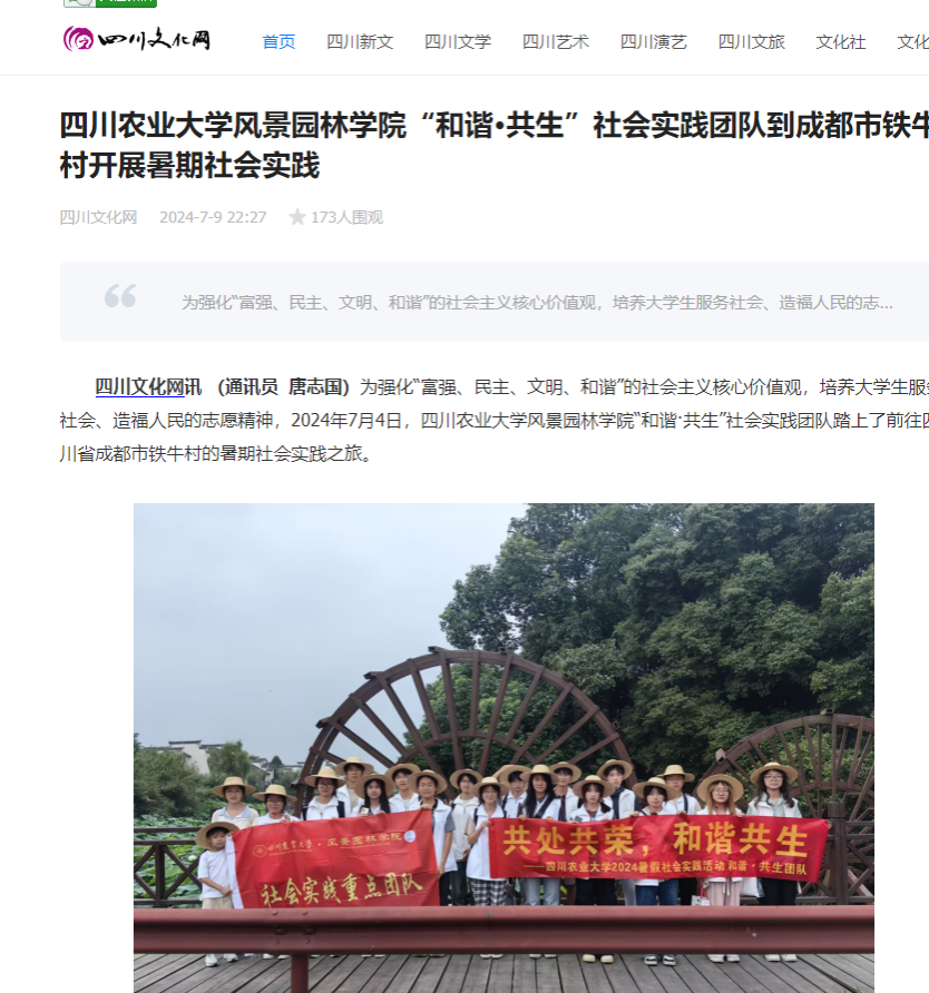 “和谐·共生”社会实践团队踏上了前往四川省成都市铁牛村的暑期社会实践之旅。