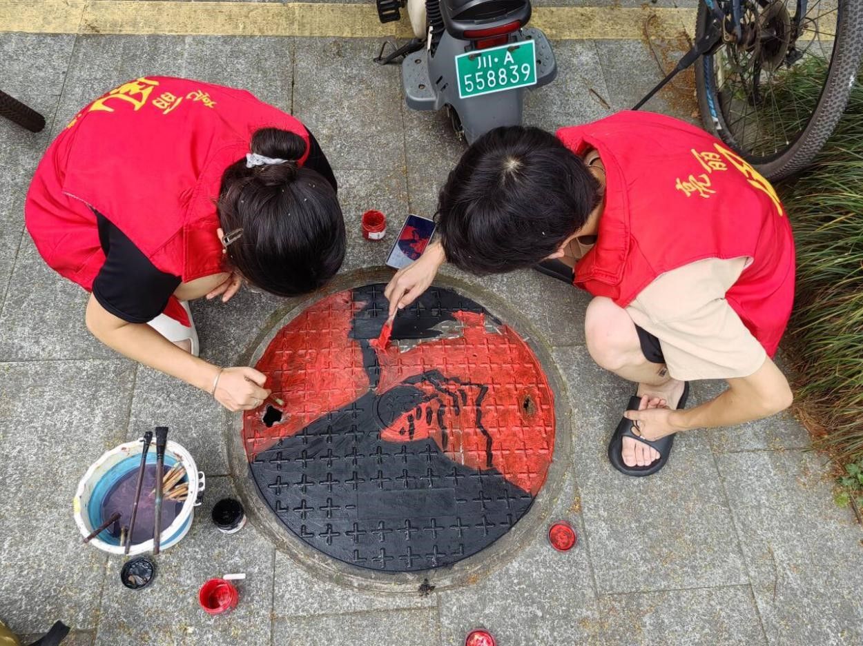 (图为川农学子正在进行井盖绘画姜季炀供图)
