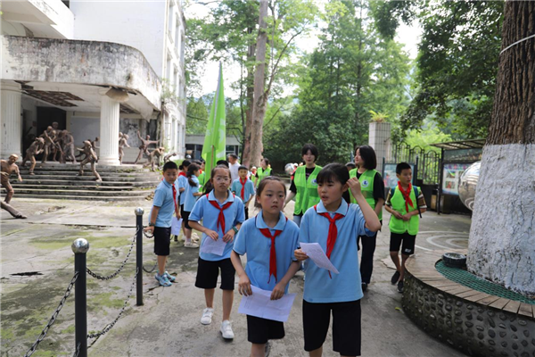 7月5日是本次活动的重头戏,要去探索彭州百里画廊——白鹿地震遗迹公园。当天的绿色研学旅行活动除了“绿创”小分队和白鹿小学的同学们参加,还迎来了彭州市青少年宫“博物馆+”绿色研学旅行综合实践小组的孩子们。