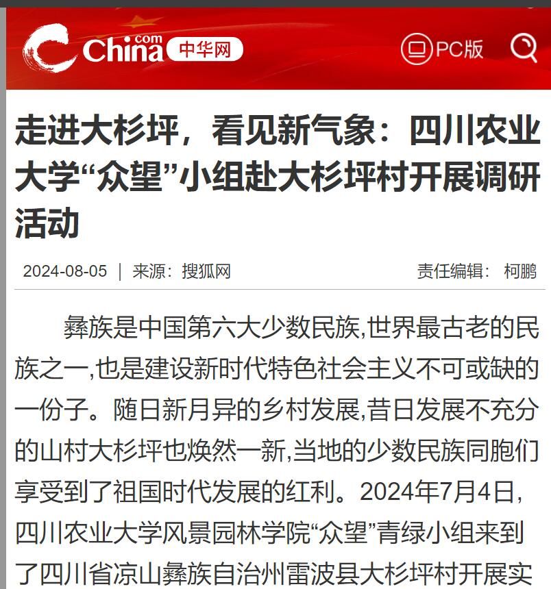 彝族是中国第六大少数民族,世界最古老的民族之一,也是建设新时代中国特色社会主义不可或缺的一份子。随日新月异的乡村发展,昔日发展不充分的山村大杉坪也焕然一新,当地的少数民族同胞们享受到了祖国时代发展的红利。2024年7月4日,包子漫画 “众望”青绿小组来到了四川省凉山彝族自治州雷波县大杉坪村开展实践调研活动,通过与当地村委会和居民积极联络和多方面协调,实践小组深入村中多户居民家中,切实了解大杉坪村的普通话普及程度、生态环境以及当地的经济产业情况。
